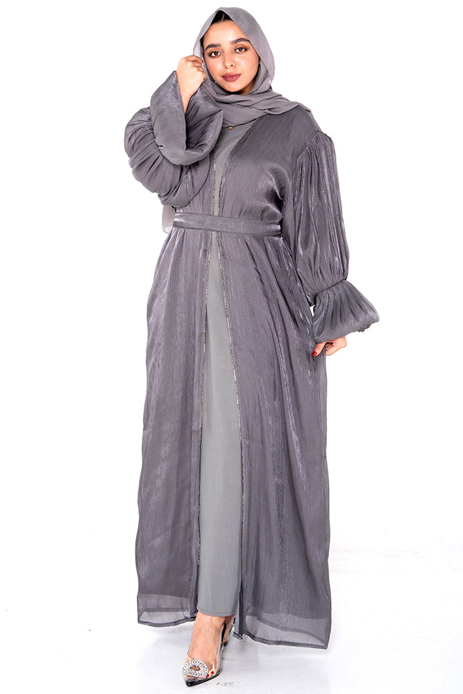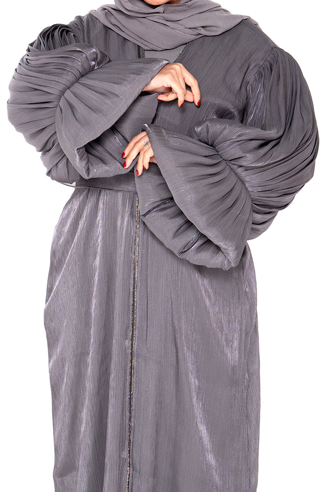 Amara Grey Pleated Sleeve Organza Abaya