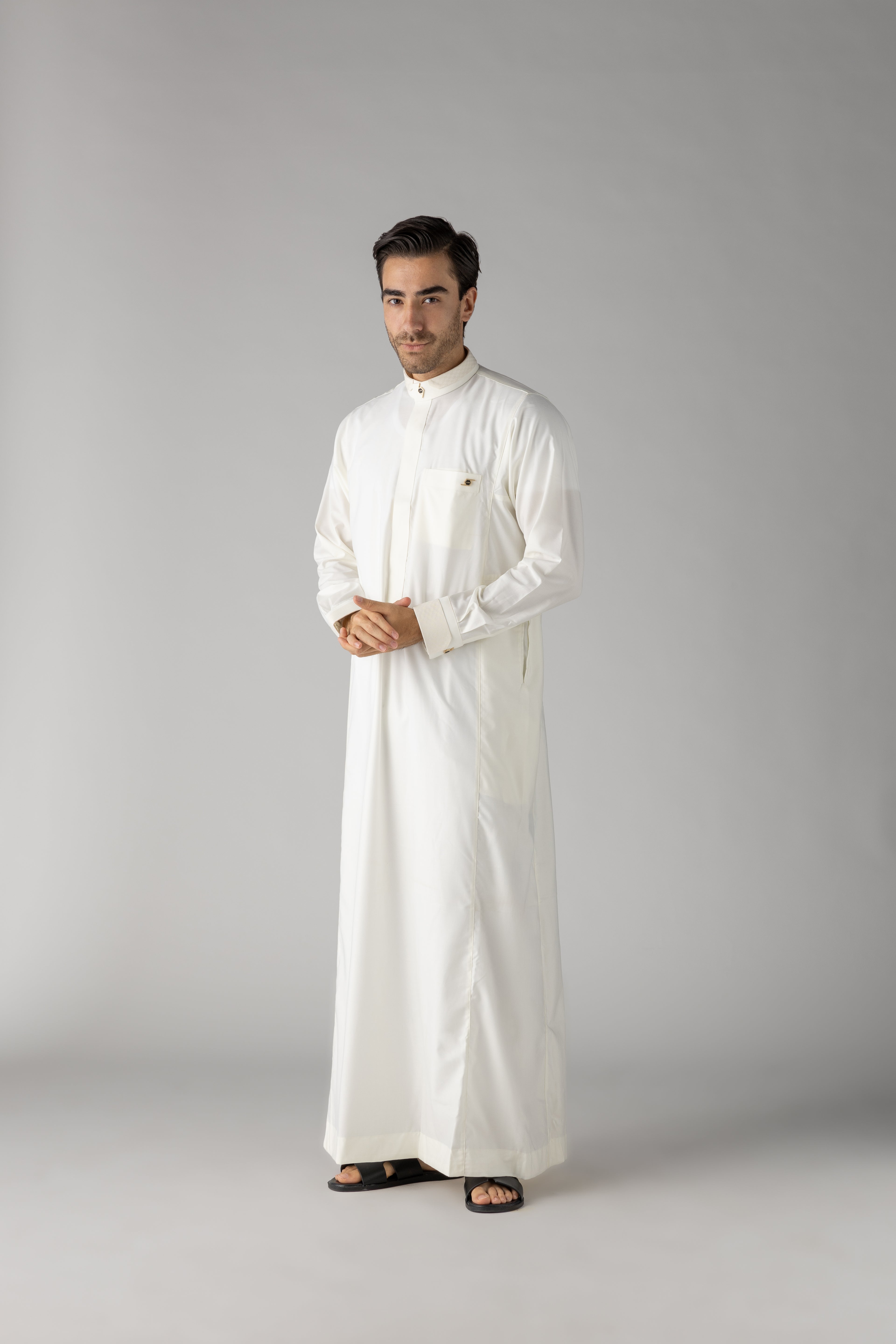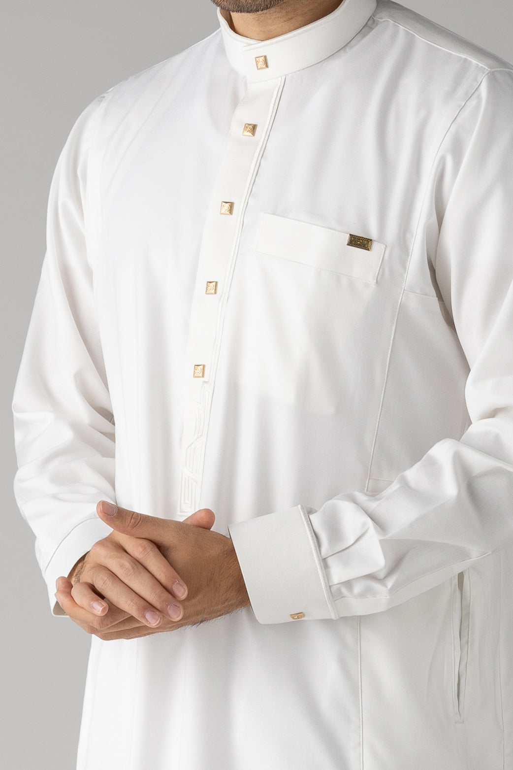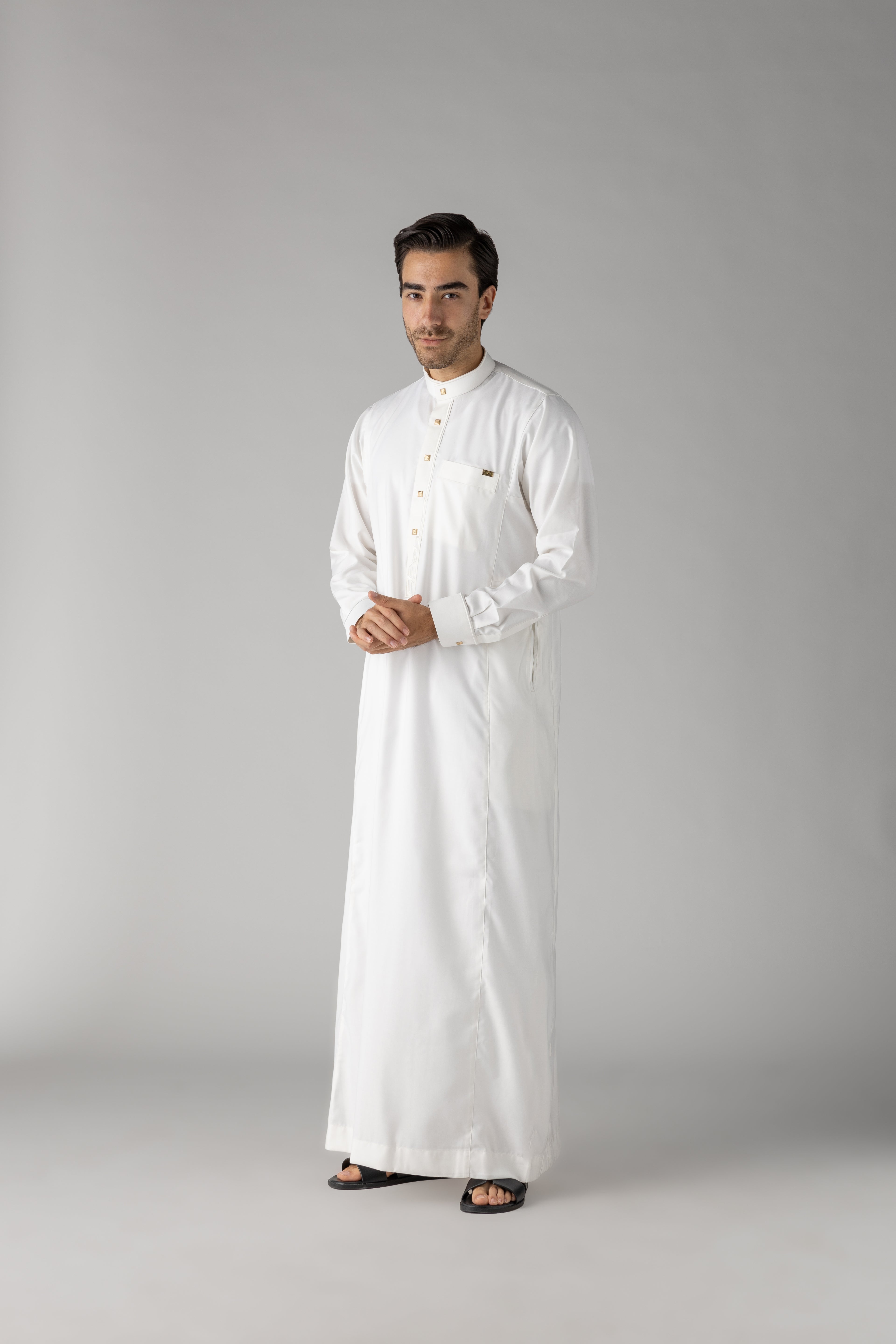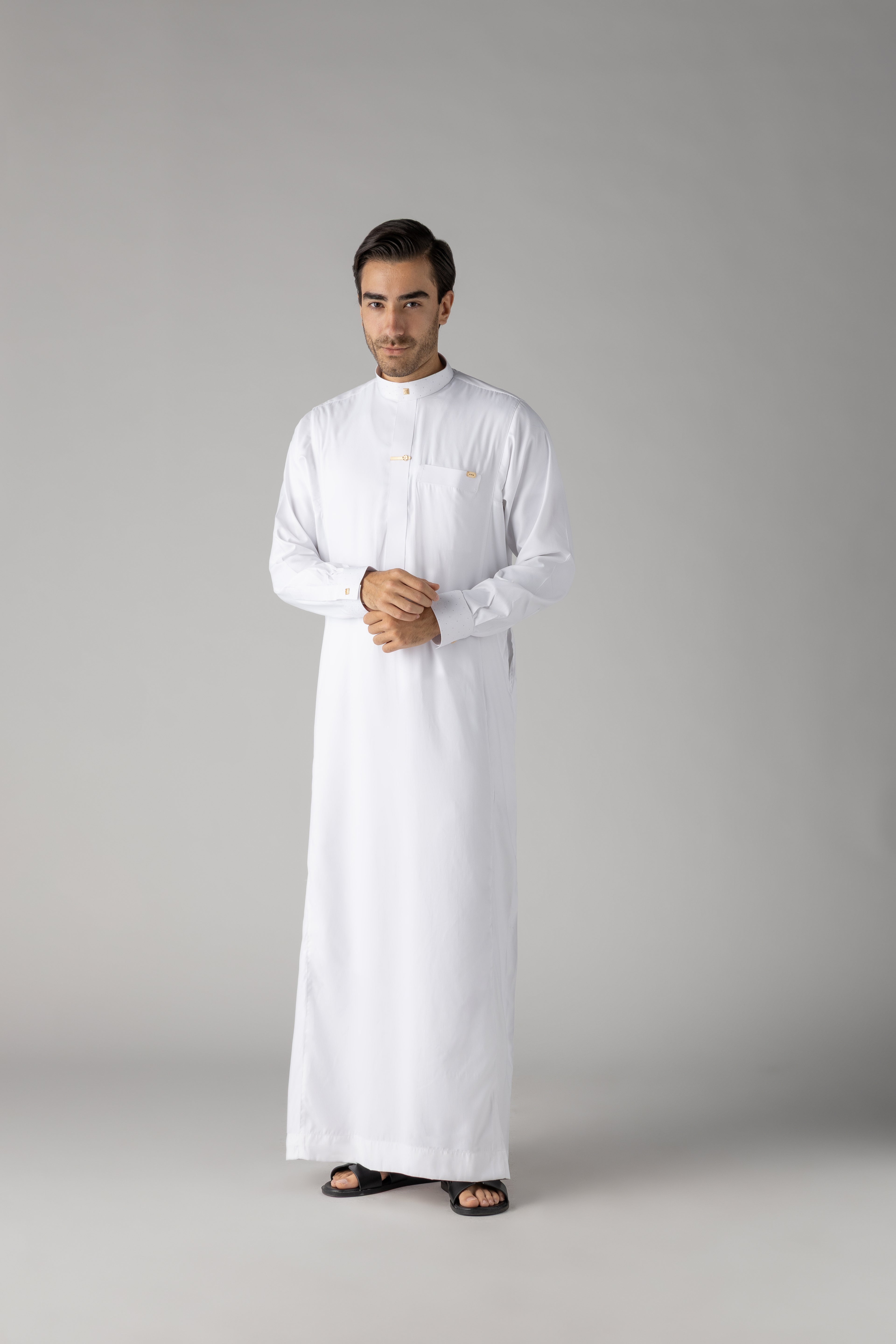 J122 White Buckle Cuff Thobe