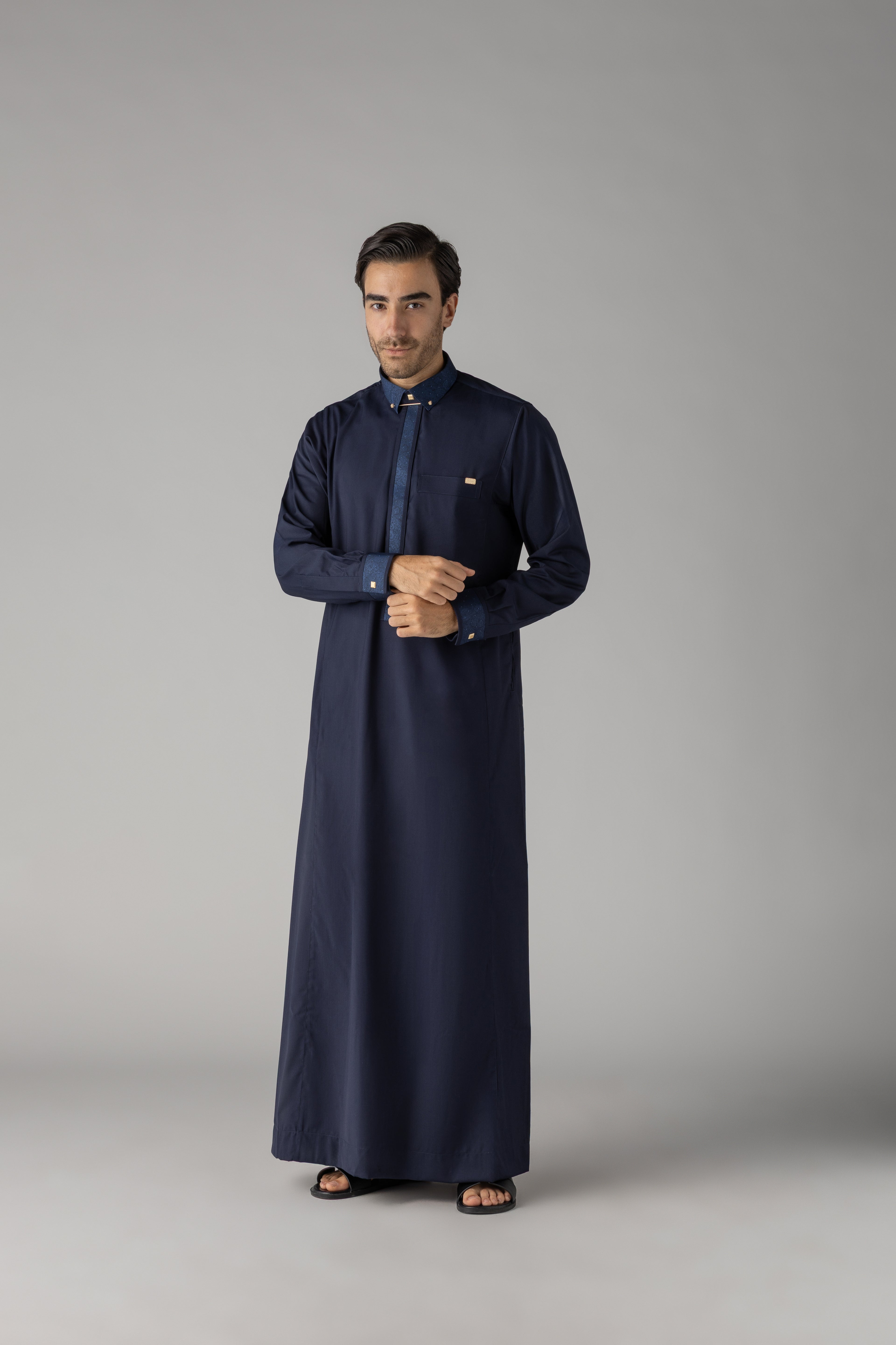J132 Navy Embroidery Thobe