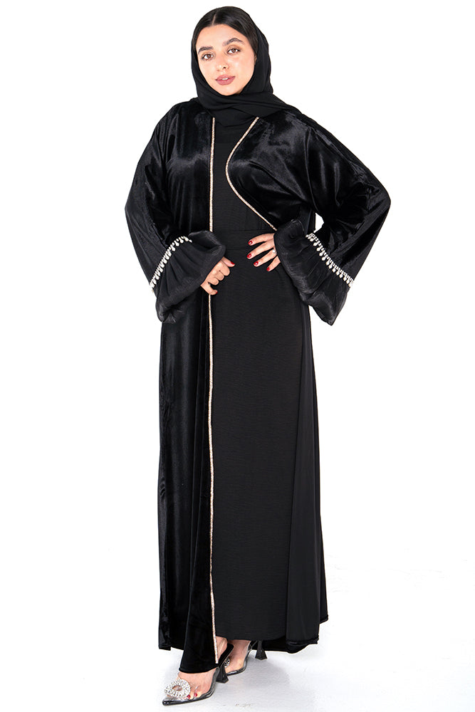 Perfect for formal occasions or elegant evenings, this abaya combines classic modesty with elevated style.