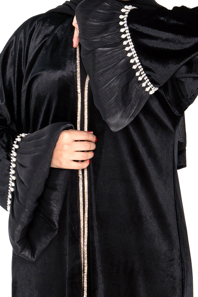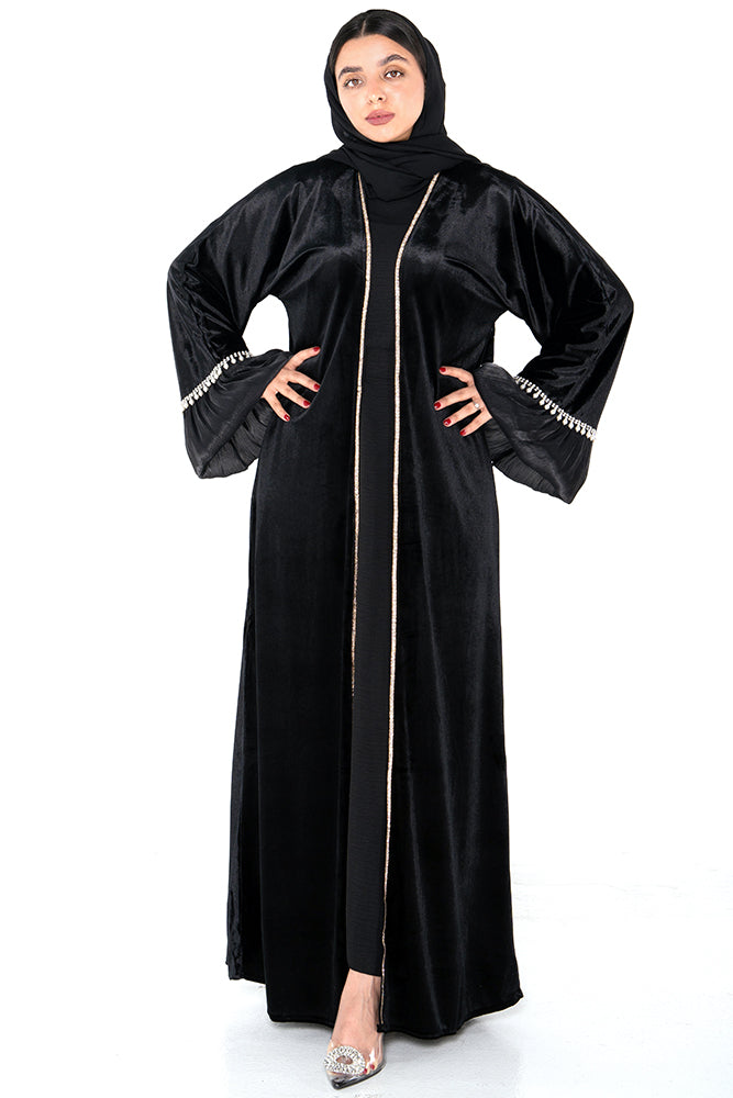 Noir Pearl Trim Abaya