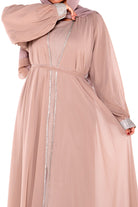 Nude Chiffon Abaya with Diamond Cuffs & Underdress