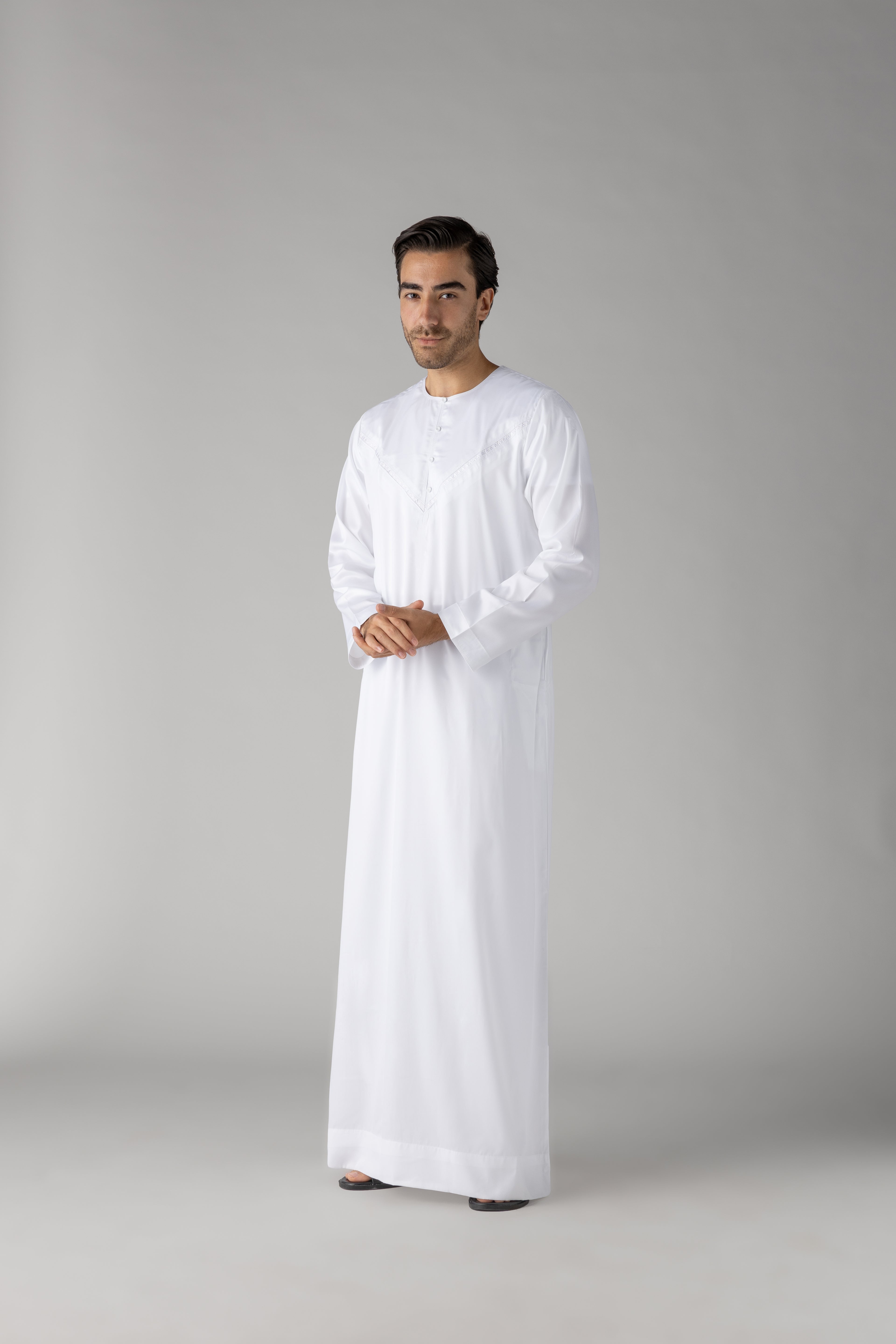 Iced White Omani traditional Jubba|Kurta stitched using best Korean Fabric which has soft feel. Press button opening along with two side pockets.