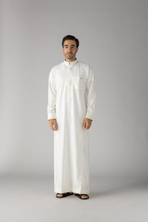 - Tailored Fit: The thobe is designed to offer a comfortable yet tailored fit, ensuring that it drapes well on the body while allowing for ease of movement.