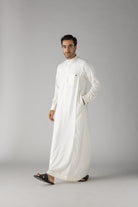 - Hidden Zip Opening: The thobe features a hidden zip opening along with press buttons, offering a seamless and clean front closure. This design ensures ease of wear while maintaining the garment's sleek appearance.