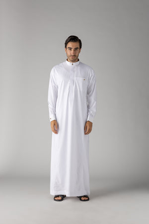 - Tailored Fit: The thobe is designed to offer a comfortable yet tailored fit, ensuring that it drapes well on the body while allowing for ease of movement.