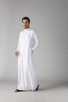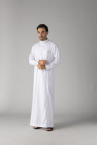 - White Collar: The thobe features a classic white collar, providing a crisp and clean look that complements the overall design.