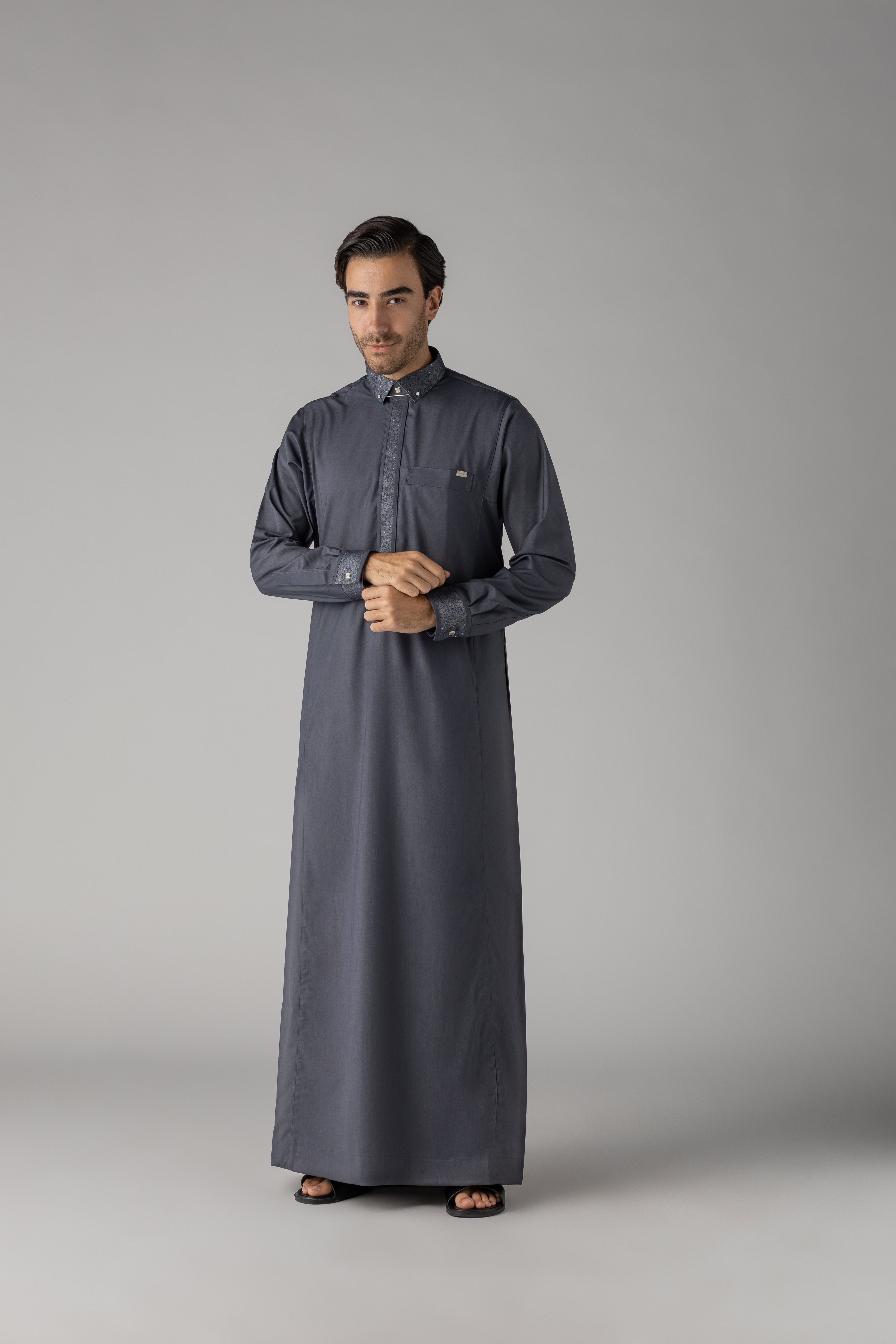 - There's also a left chest pocket, adding functionality to this stylish thobe.