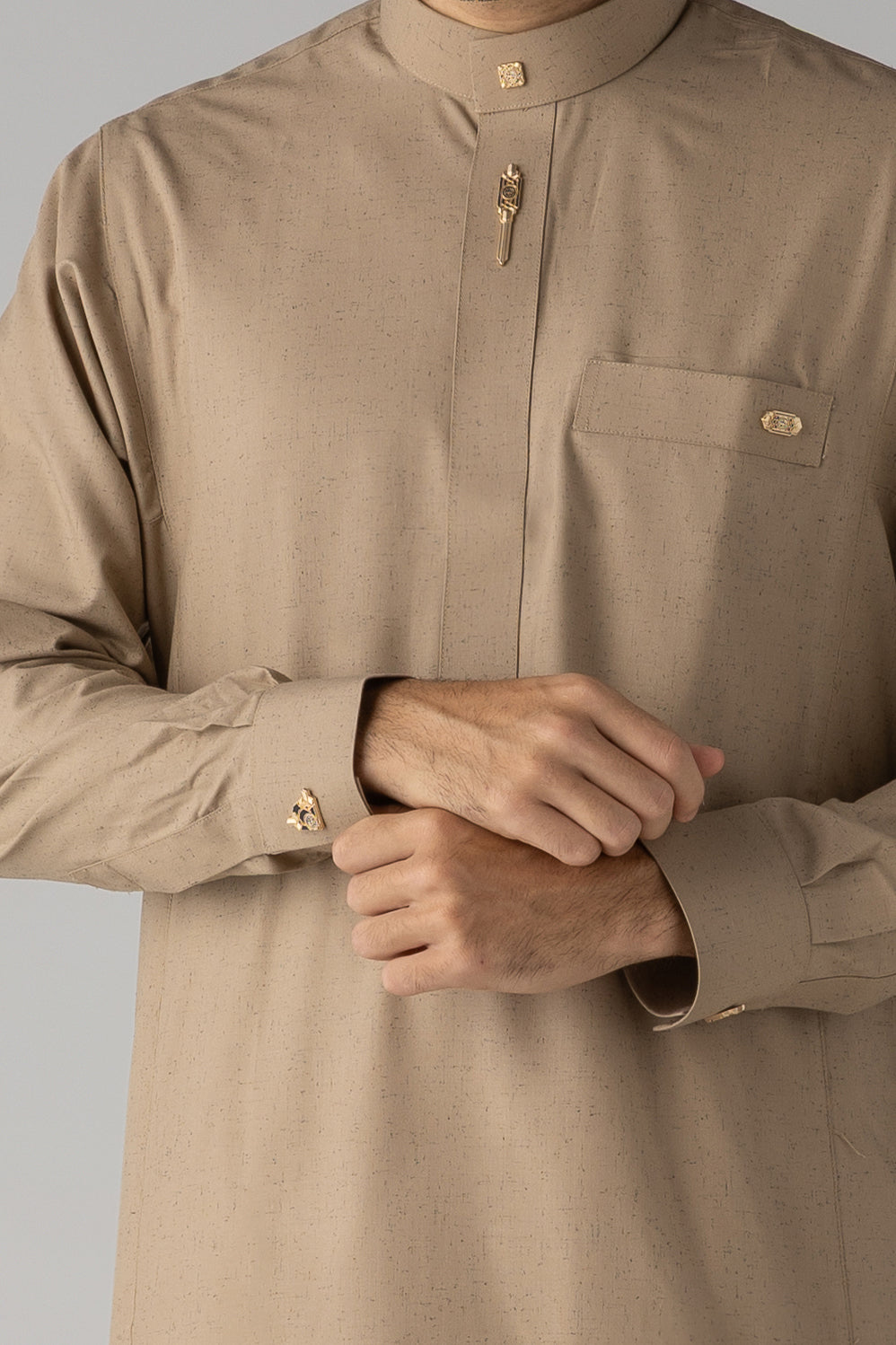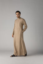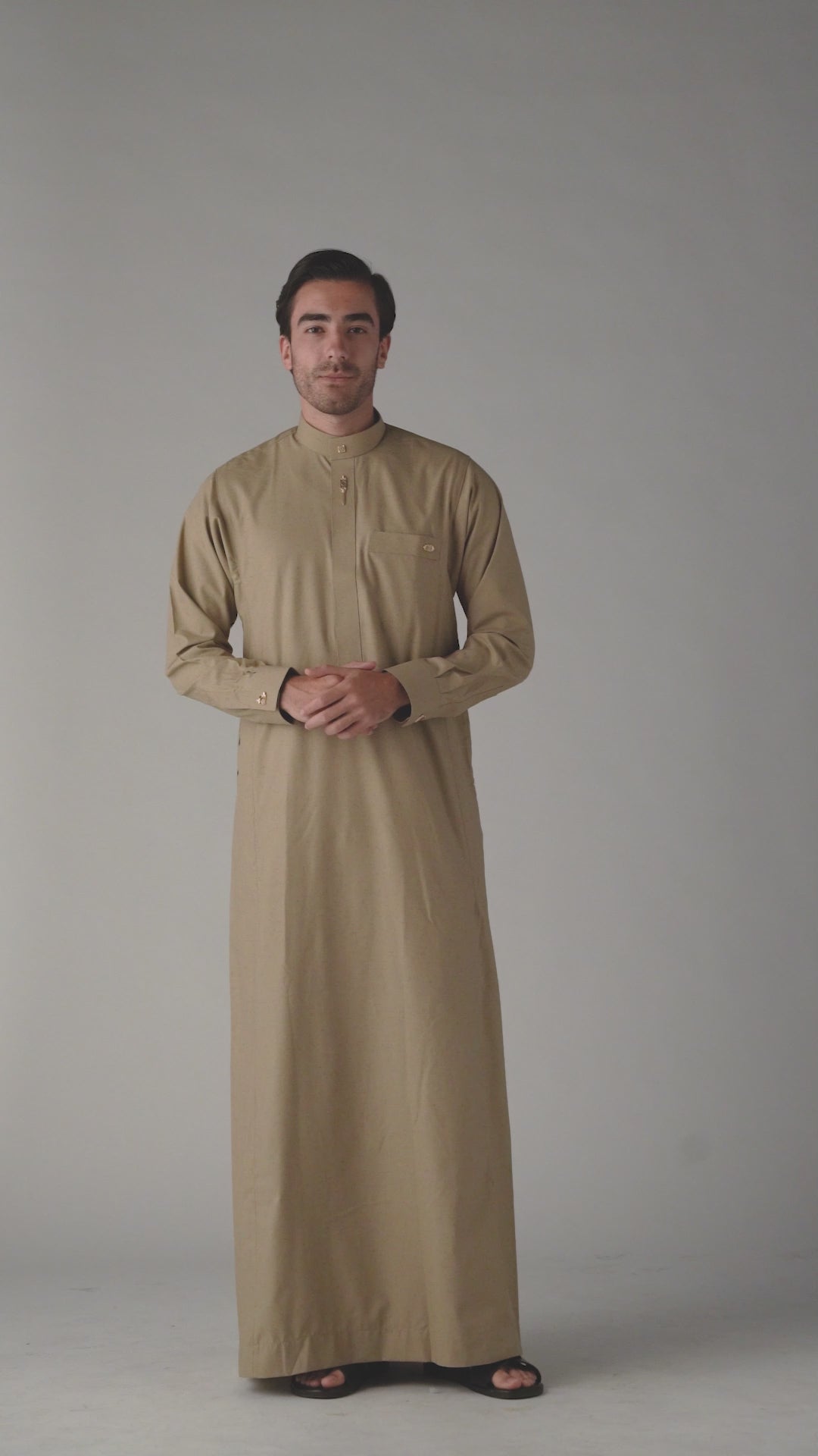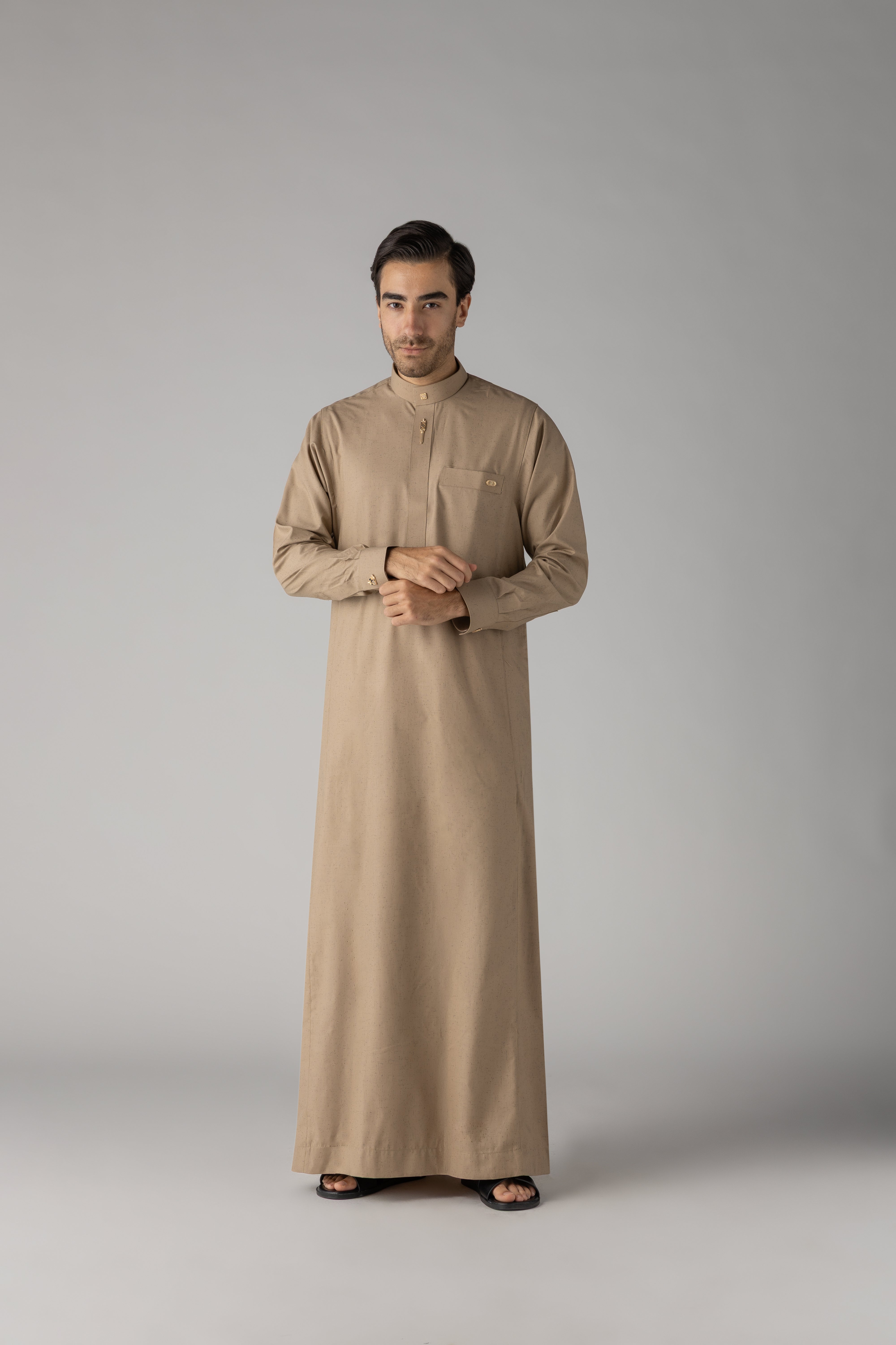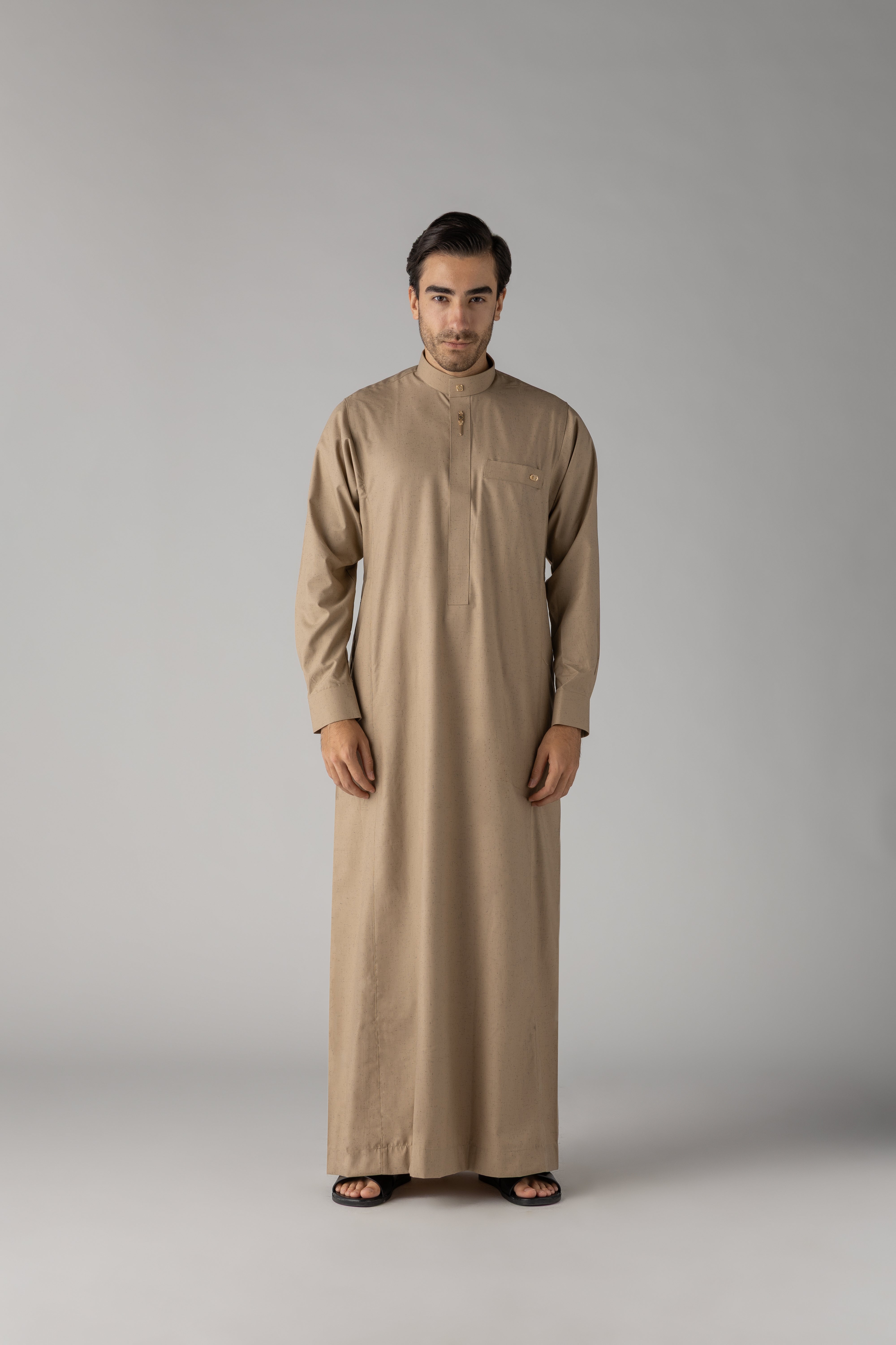 The Al Noor Collared Thobe combines tradition with modern convenience, making it a perfect choice for any occasion. Designed for both style and functionality, this thobe features: