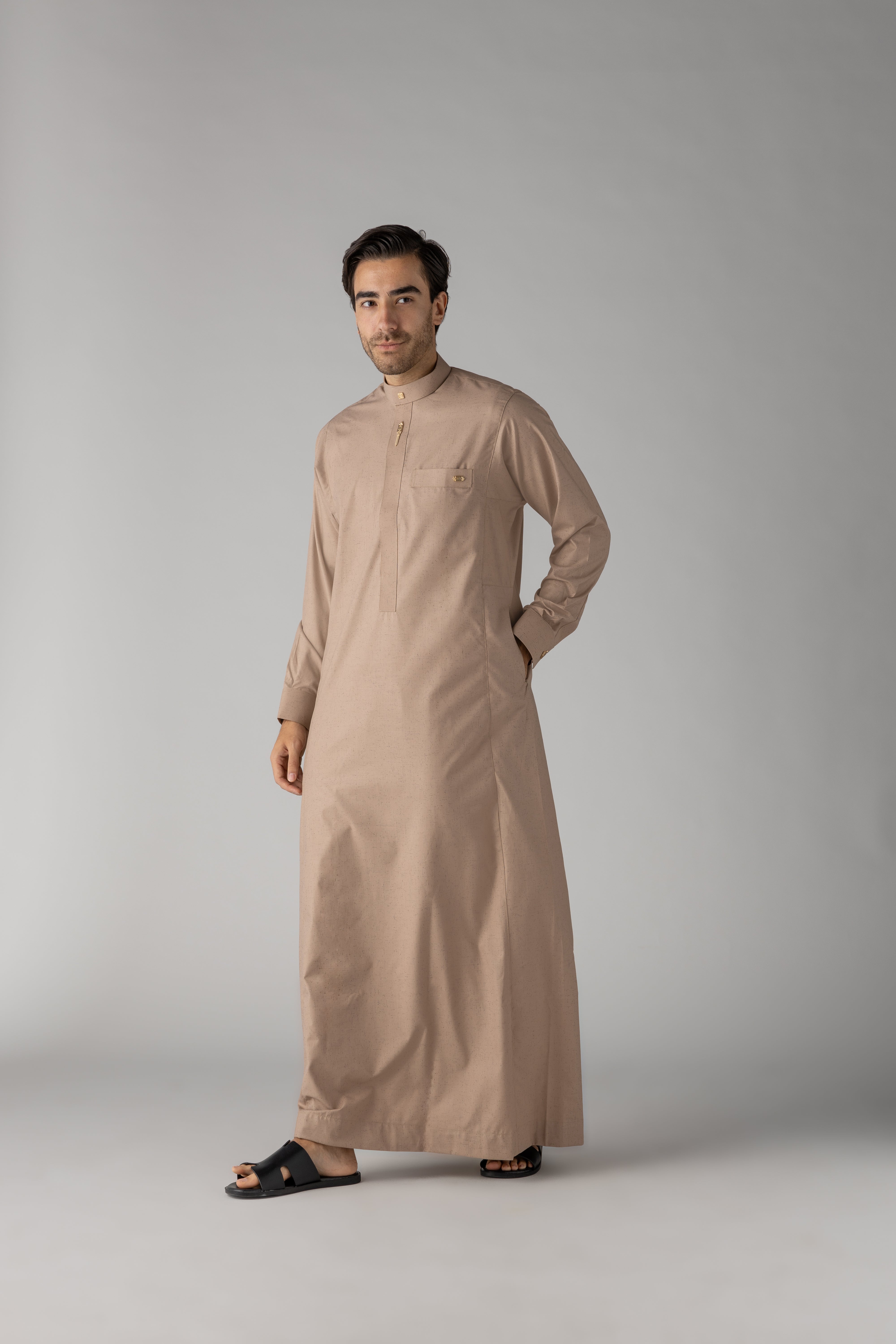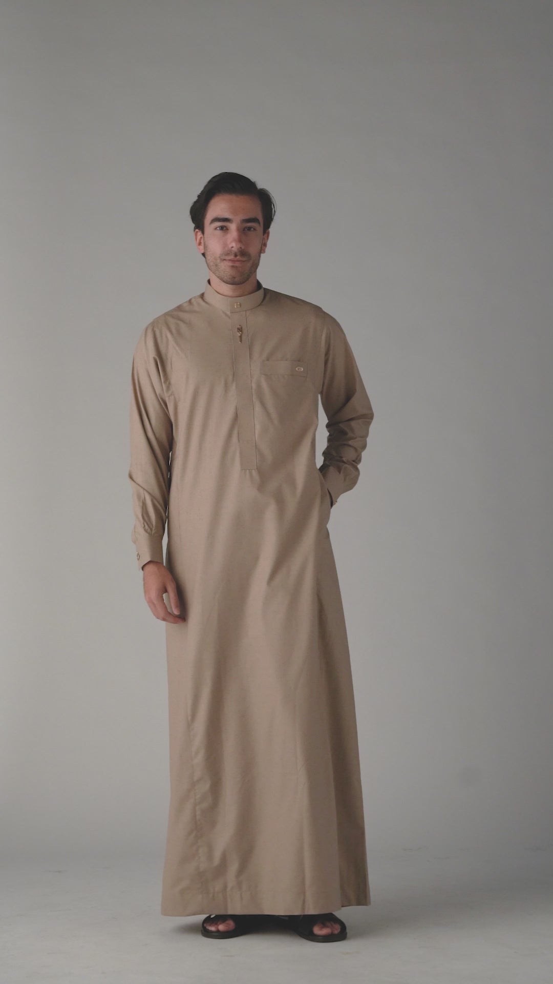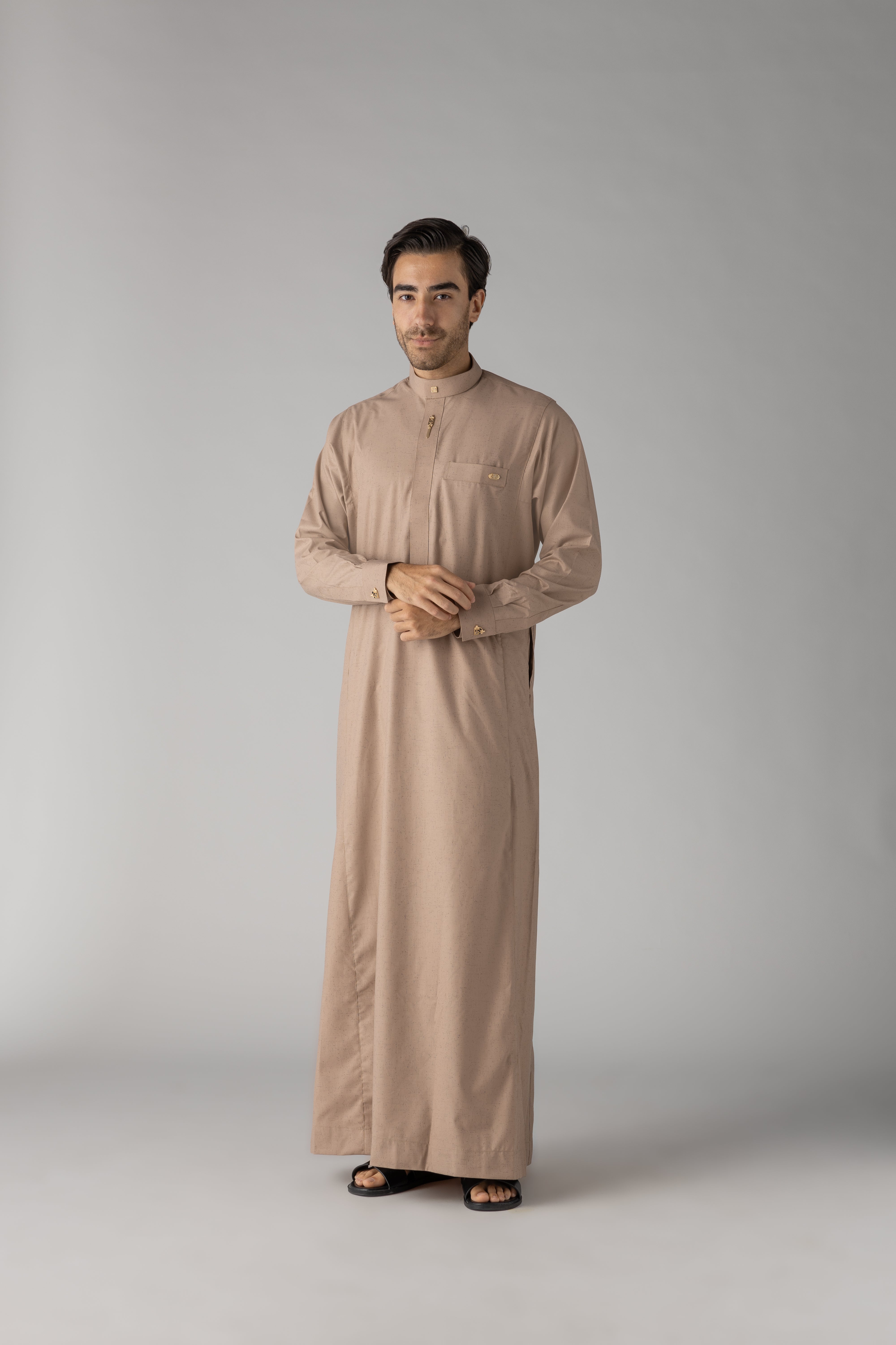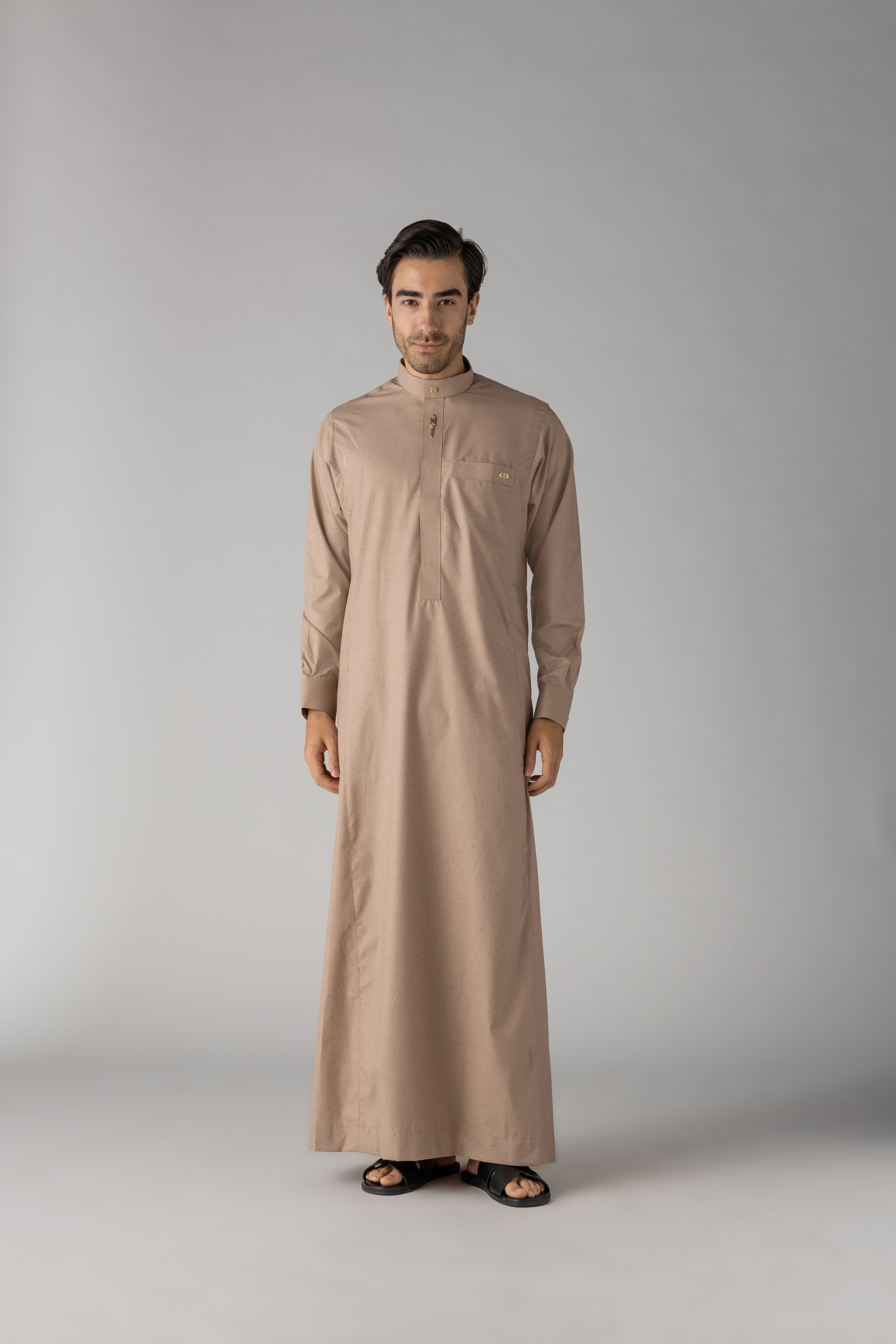 The Al Noor Collared Thobe combines tradition with modern convenience, making it a perfect choice for any occasion. Designed for both style and functionality, this thobe features: