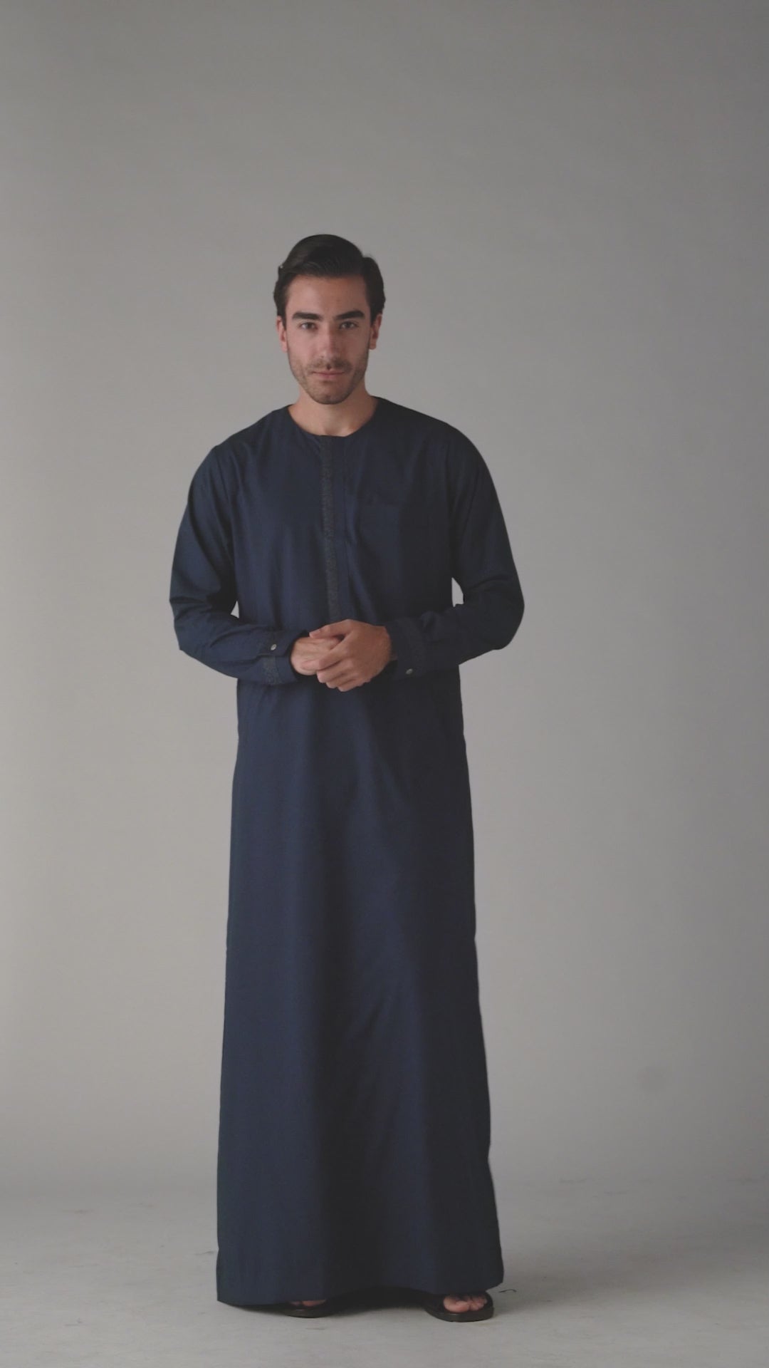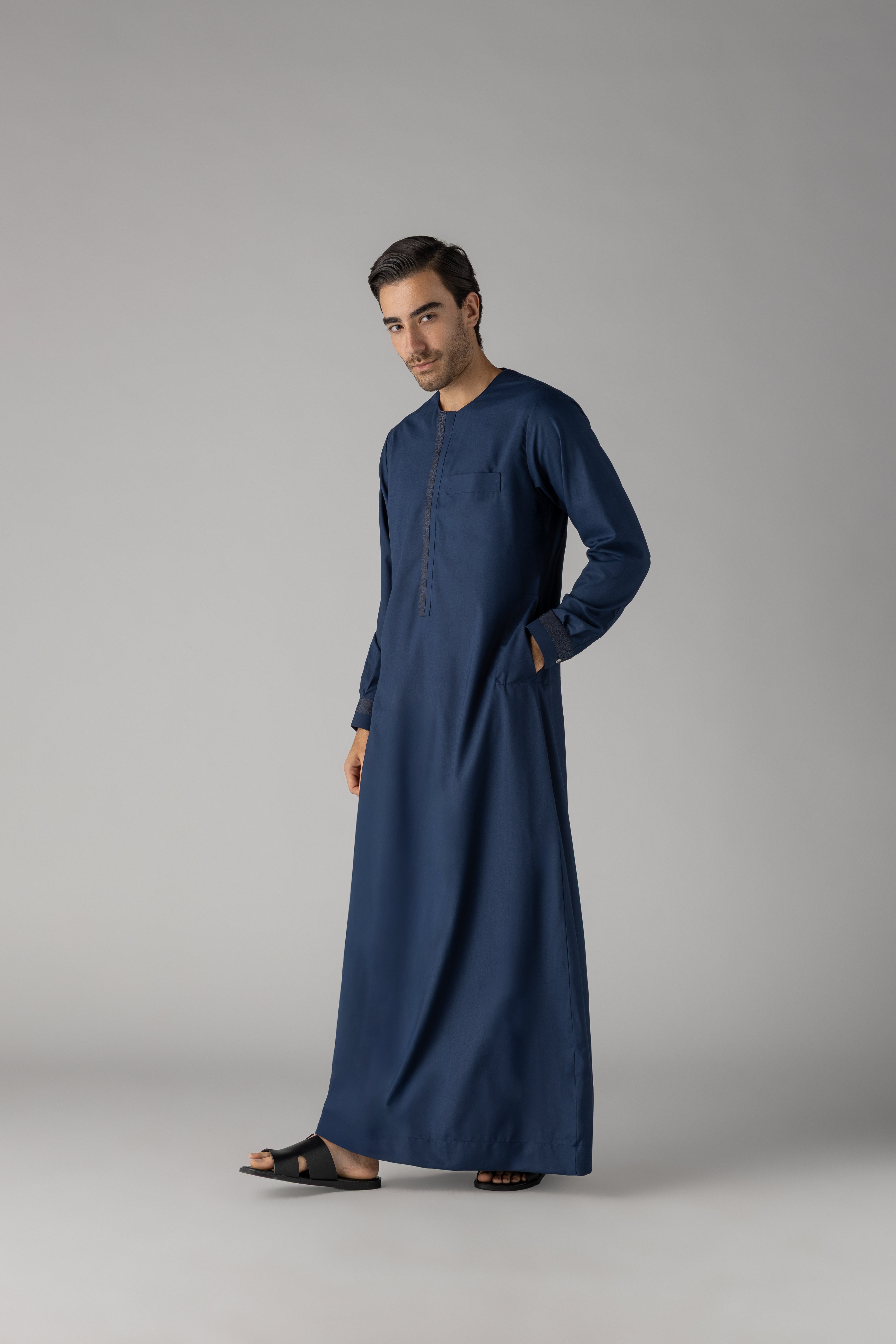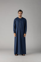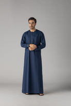 Elevate your wardrobe with the J149 Bluewood Omani. Part of the Al Noor Collection, this thobe exudes style and elegance. The hidden zip opening and White buttons on the cuff add a touch of sophistication. Made with soft polyester, it's both comfortable and chic.